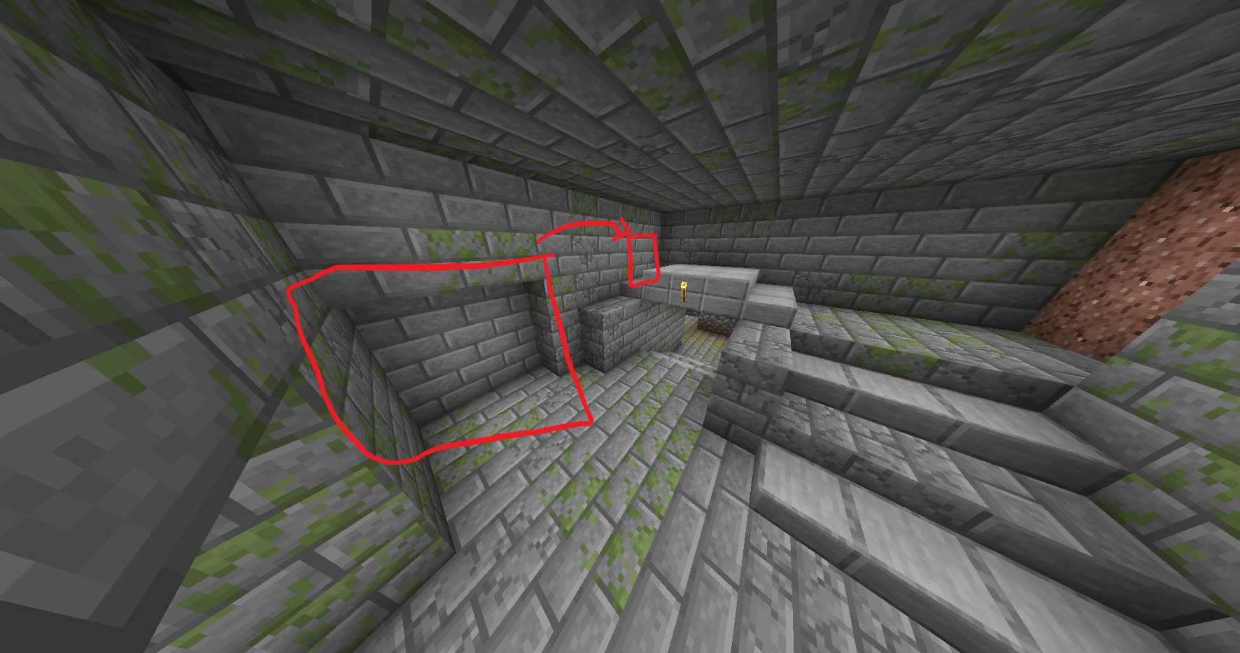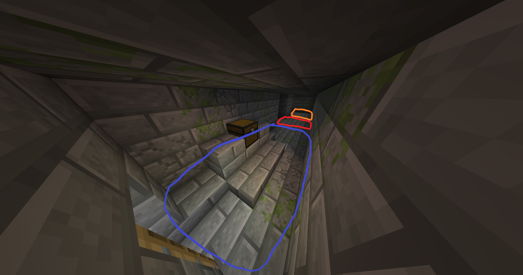 - 그 청크 내에서 청크 좌표가 (3, x, 3)인 곳을 직선으로 파면 '시작 계단'이 나옵니다.
