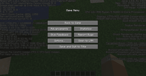 시작 계단이 있는 청크 안으로 들어가셔서 F3을 눌러서 좌표계를 띄웁니다