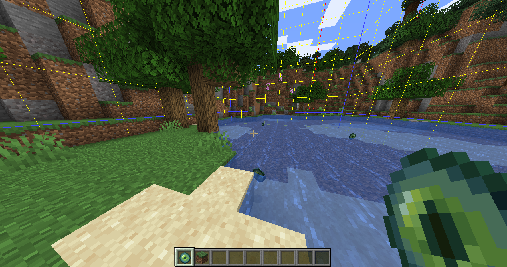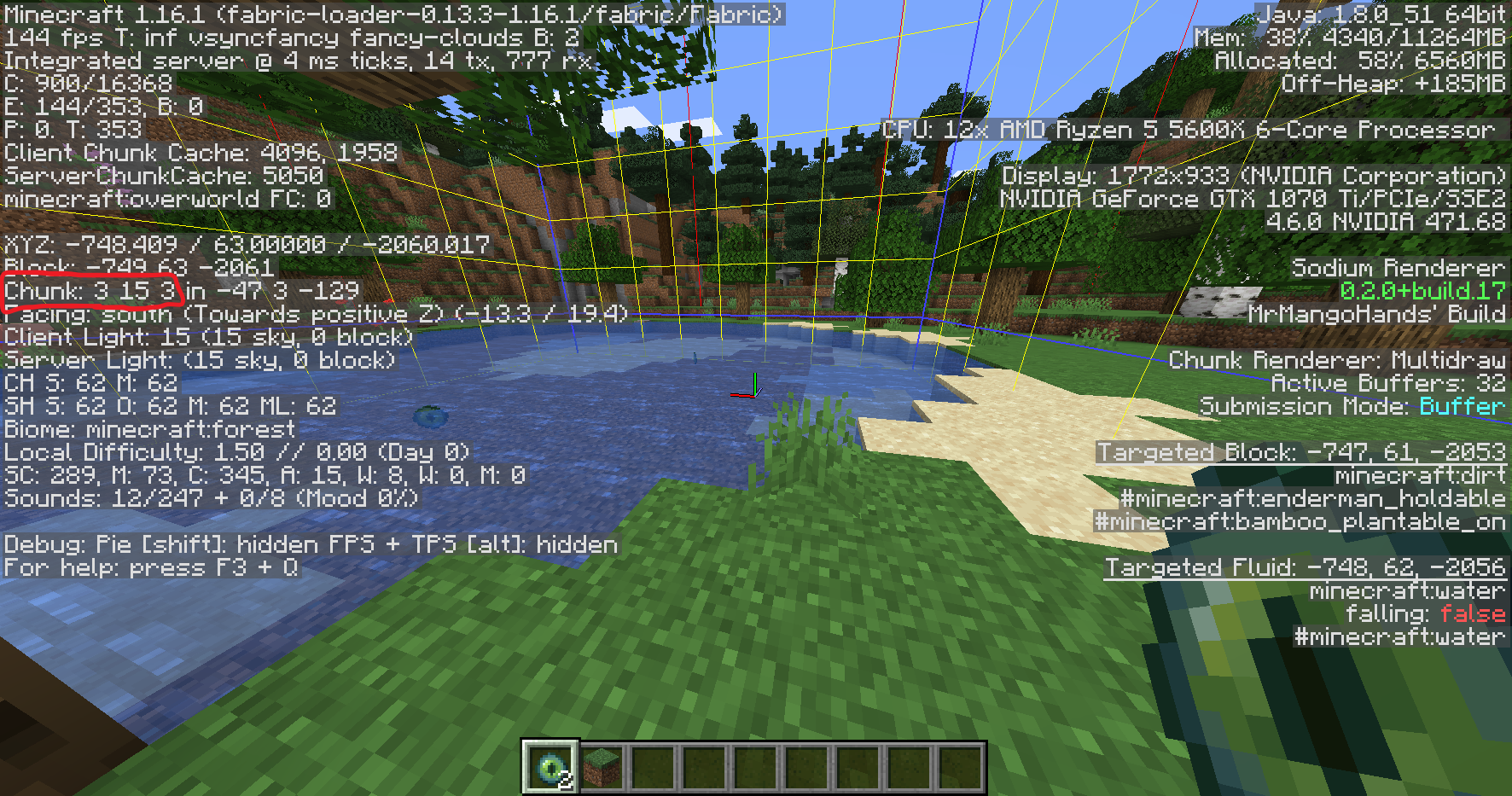 F3 + G를 누르면 청크 경계선이 노란색으로 나타납니다.