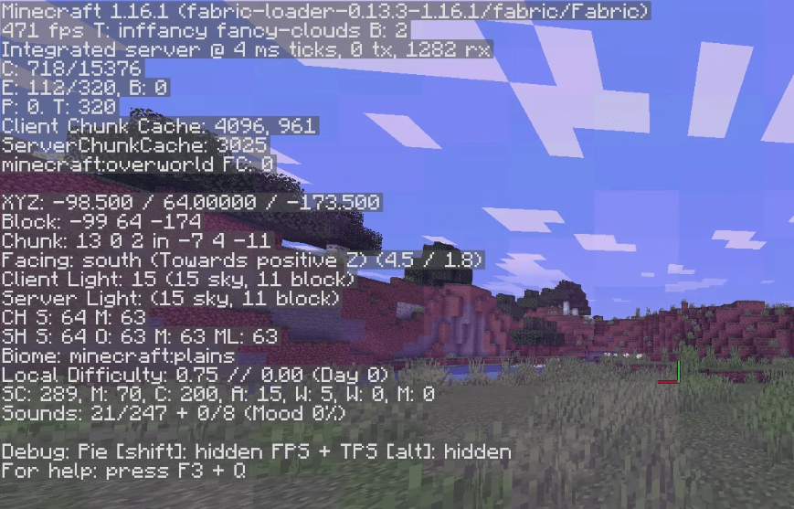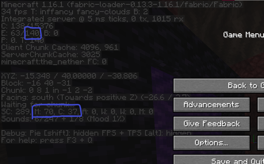 1. 네더 들어가자마자 디버그 스크린을 확인한다. (보통 오버월드에서 미리 F3 눌러놓고 포탈 탄 다음 네더 도착하는 순간 ESC를 눌러서 인게임 타이머 멈추고, )
