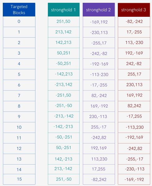 신버전(1.21)에서 확인해보니 엔더 눈이 조금 이상하게 가는 거 같음. 언제부터 달라졌는지는 모르겠는데 암튼 신버전에서는 엔더 눈이 들어간 청크가 아니라 엔더 눈이 들어간 청크에서 x+1을 갔을 때 그 청크가 시작 계단이 있는 청크이고, 그 청크에서 청크좌표 3, 3으로 가야함